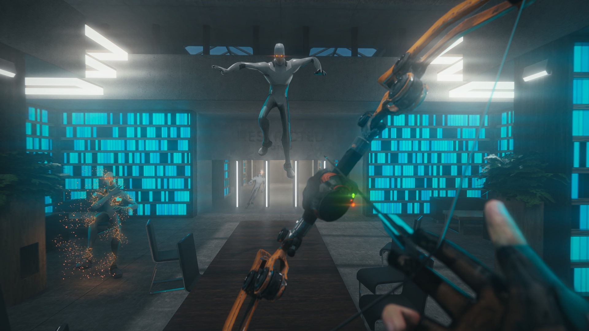 You have to face the robots in ranged combat and fight them, because only in your power to stop madness that is happening inside.