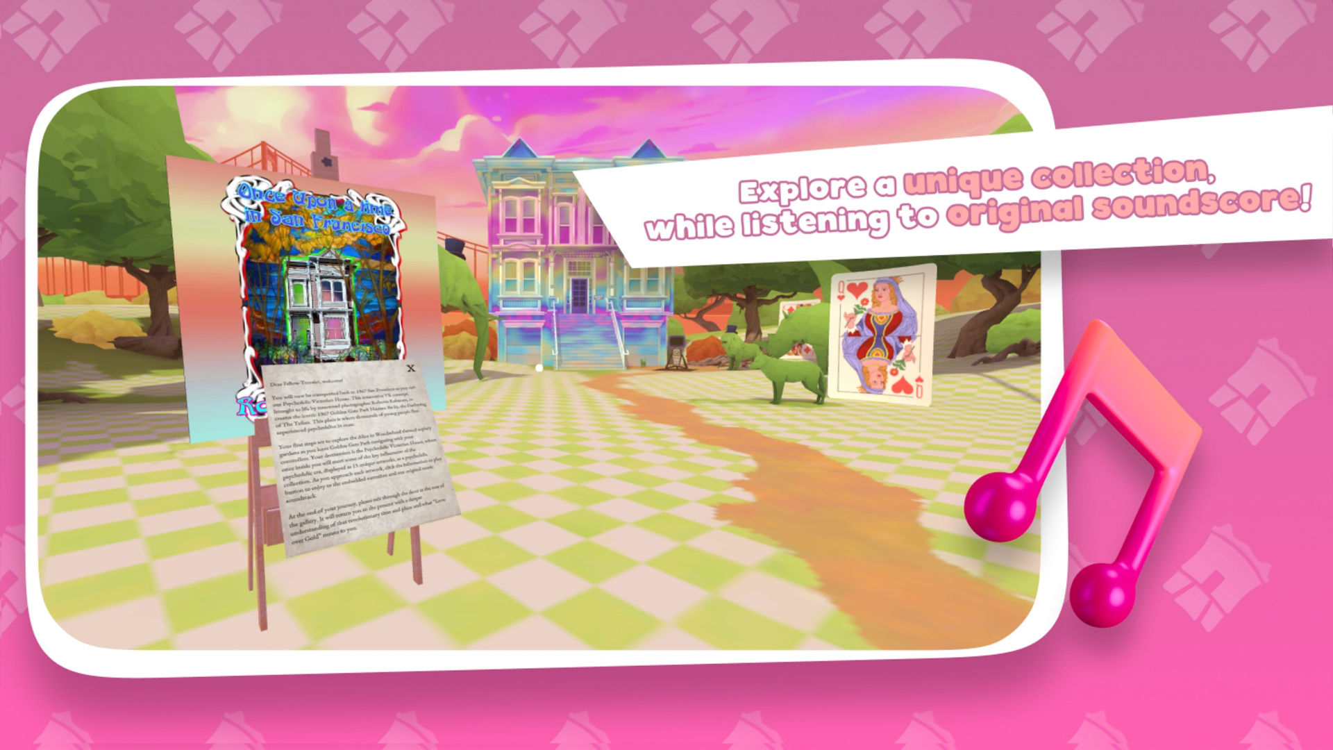 Outside, you will experience the Alice in Wonderland-themed topiary gardens that host a big Psychedelic Victorian House. Once inside the House, you will meet some of the key influencers and artists of the Psychedelic era and learn about how each left their footprints during those revolutionary times.
