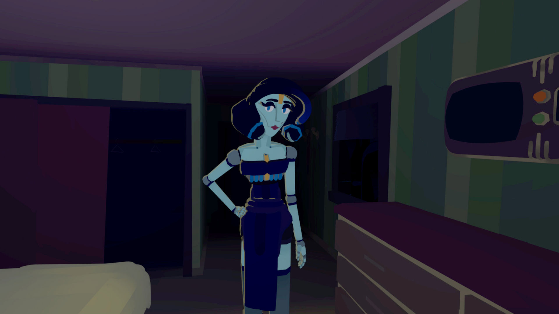 Enter a sprawling retro-futuristic cityscape with an original score, ensemble of voice actors and detailed hand drawn (in VR!) environments.